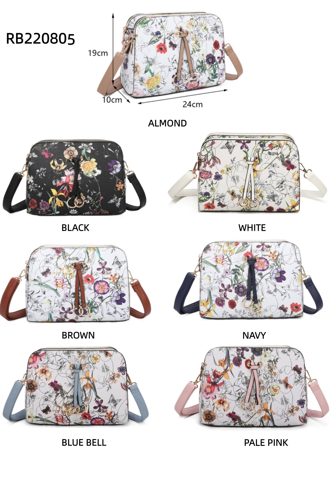 Introducing the Hana Twin Rings Tri-Compartments Vintage Flower Print PU Leather Crossbody Bag, a timeless fusion of elegance and functionality. Crafted from high-quality PU leather, this crossbody bag combines durability with a touch of vintage charm, making it a versatile accessory for any occasion. Featuring a unique vintage flower print, the bag adds a pop of color and character to your ensemble, effortlessly complementing your personal style. Its twin-ring design offers a contemporary twist, adding a modern edge to the classic silhouette. Designed for practicality, the bag boasts three spacious compartments, providing ample room to organize your essentials with ease. Whether you're heading to work, running errands, or enjoying a night out, this bag keeps your belongings neatly organized and easily accessible. With its adjustable crossbody strap, you can wear it comfortably over your shoulder or across your body, ensuring hands-free convenience wherever you go. Elevate your everyday look with the Hana Twin Rings Tri-Compartments Vintage Flower Print PU Leather Crossbody Bag and make a statement with every step. Size: 24cmW x 19cmH x 10cmD